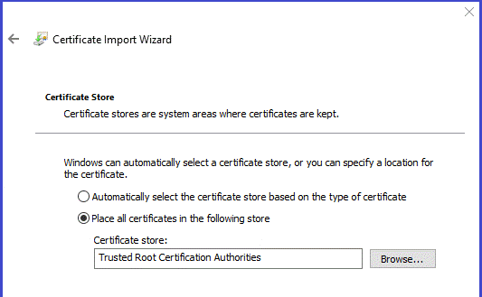 - Import root certificate, it will be in a file with a name containing “root” into folder "Trusted Root Certificate Authority".